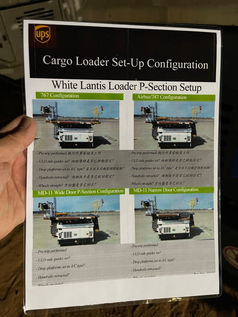 2021-05-17-腹艙Loader靠機作業前檢查 2位檢查-B2-L2 1位BL1在旁邊看是否正確-過程中不可插話 完成後B2向BL1比OK手勢-BL1回OK手勢 – Pre-rip performed 執行作業前檢查工作 -ULD side guides set?兩側導桿是否已移動固定? – Drop plaforms set fo AC ype?是否依不同機型調整搭橋? -Hanrails retracted?兩側扶手是否已收回固定? -Wheels straight?方向盤是否已回正?